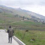 Venezuelan volunteer walking along a migration route near Pamplona, Colombia.