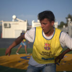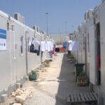 Containers lined with laundry in the Closed Controlled Access Centre (CCAC), Samos, Greece.