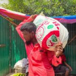 Rohingya mother with umbrella and children near Cox’s Bazar, Bangladesh.